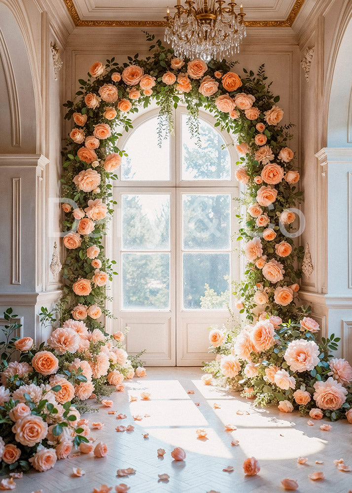 Avezano Indoor Floral Arch with Peach Roses Photography Backdrop Designed By Danyelle Pinnington