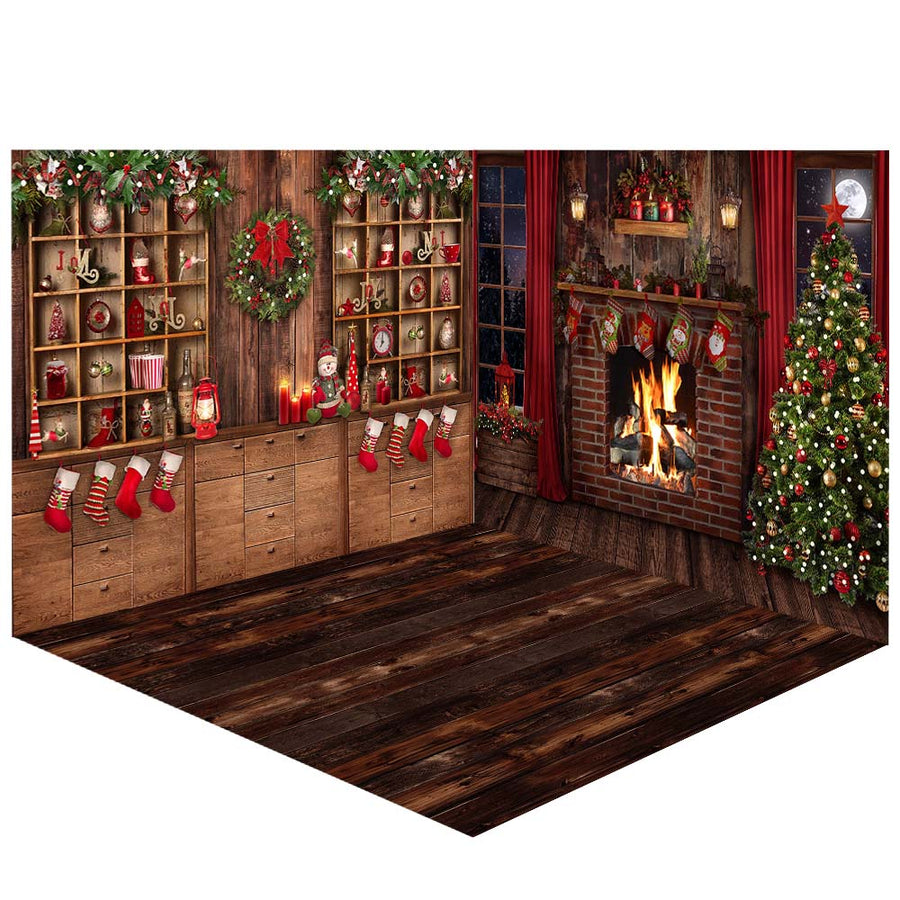 Avezano Christmas Fireplace and Gift Window Photography Backdrop Room Set