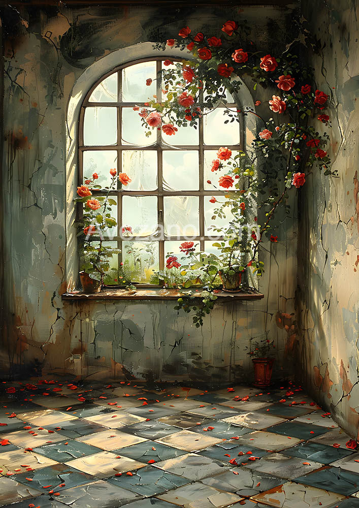 Avezano Spring Pink Roses and Window screens Photography Backdrop By Lecheme Ruby Gu