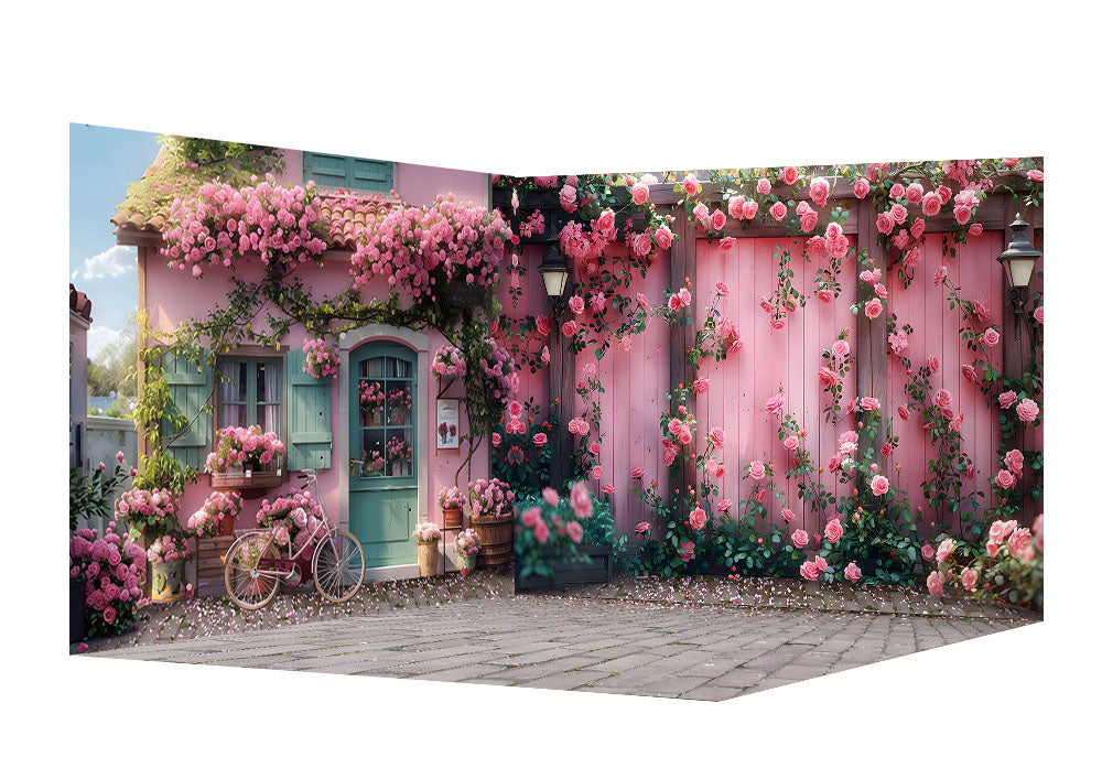 Avezano Spring Pink Rose House Photography Backdrop Room Set