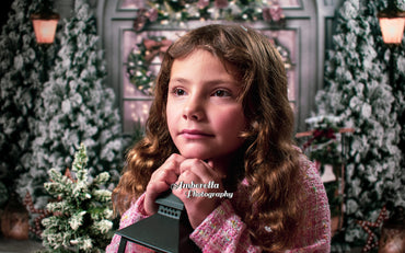 Avezano Wood Door with Wreath in Christmas Trees Photography Backdrop