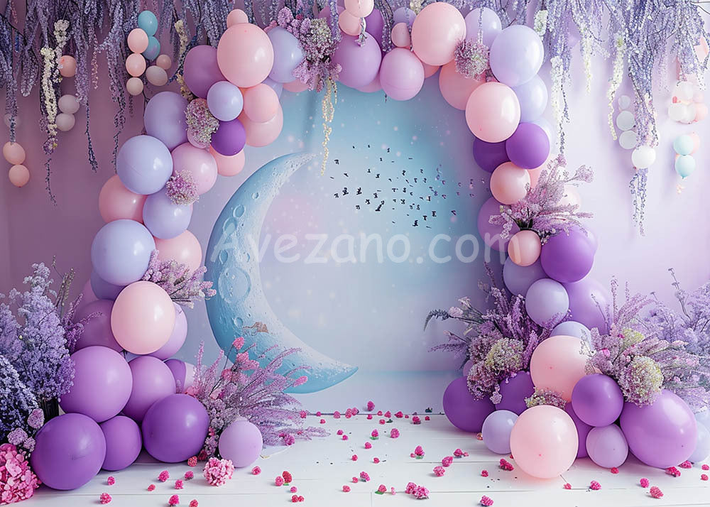 Avezano Pink Balloons and Flowers Cakesmash Backdrop Designed By Polly Ro Design