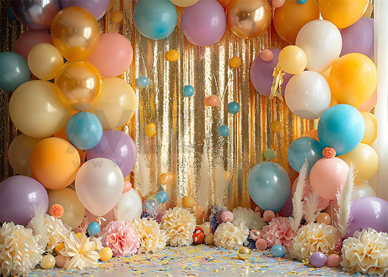 Avezano Rainbow Balloons and Birthday Cake Photography Background