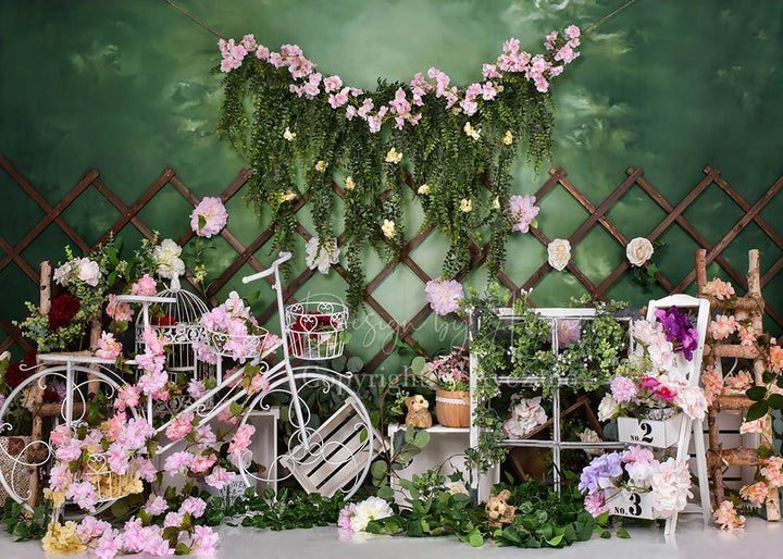 Avezano Spring Green Theme Flowers Bike Decorations Photography Backdrop