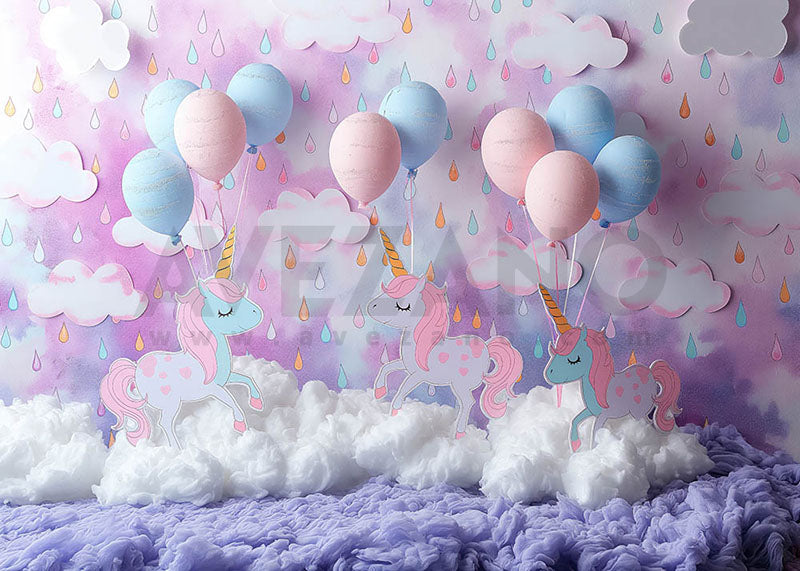 Avezano Purple Theme Raining Clouds Party for Kids Photography Background