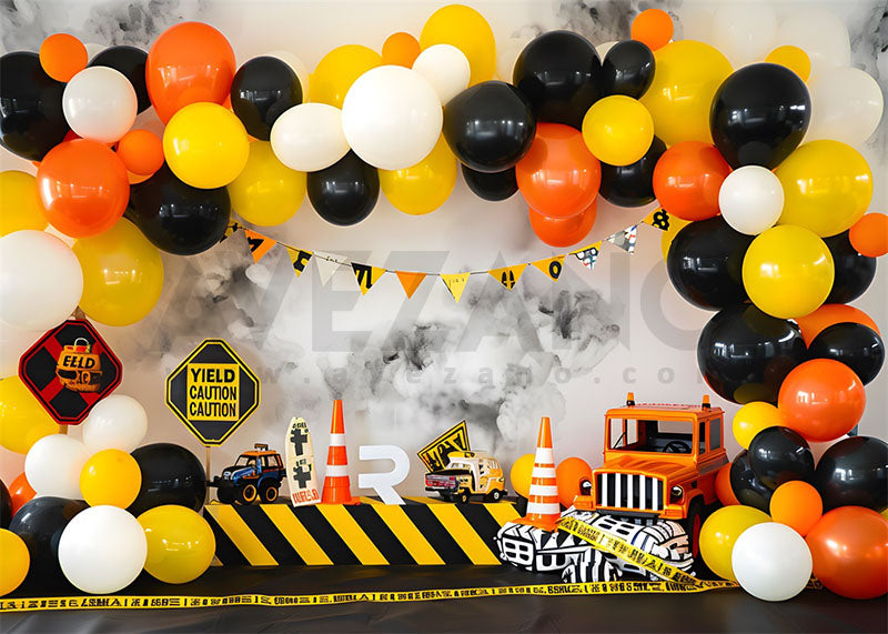 Avezano Backhoe and Warning Sign Balloon Party for Children Photography Background