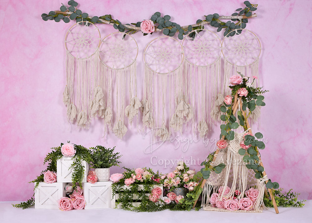 Avezano Pink Background Boho Flowers Backdrop For Photography