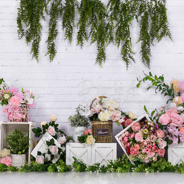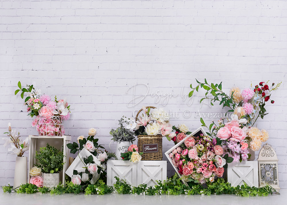 Avezano Spring White Brick Wall Floral Window Photography Backdrop