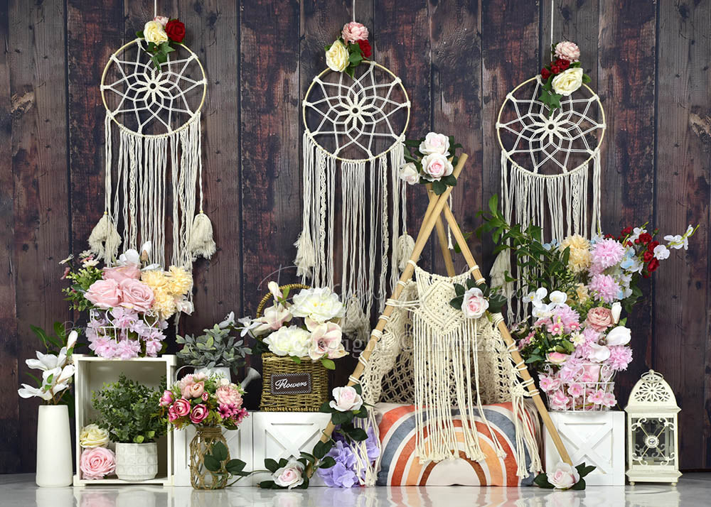 Avezano Boho Tassel Charm Flowers Spring Photography Backdrop