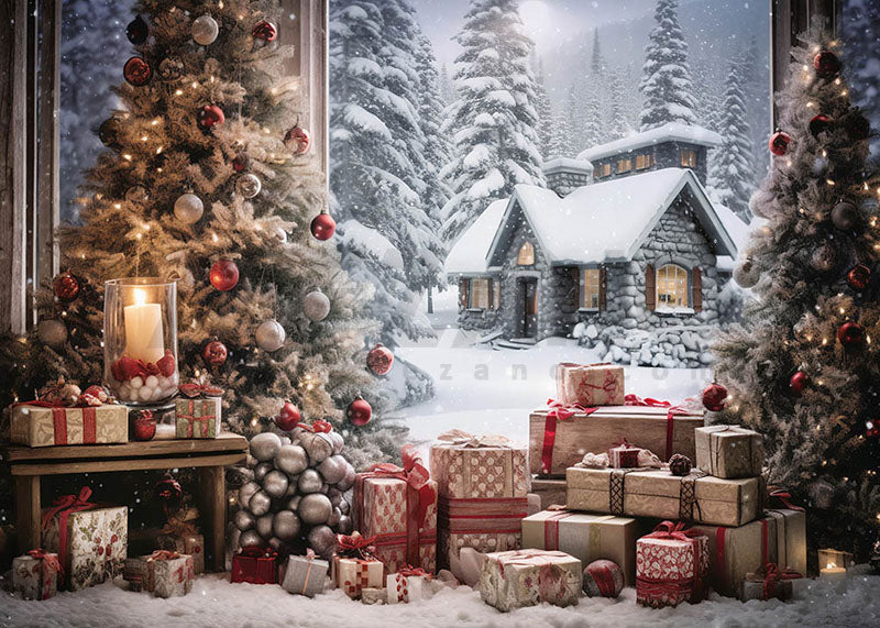 Avezano Christmas Presents and a Snow House Photography Backdrop