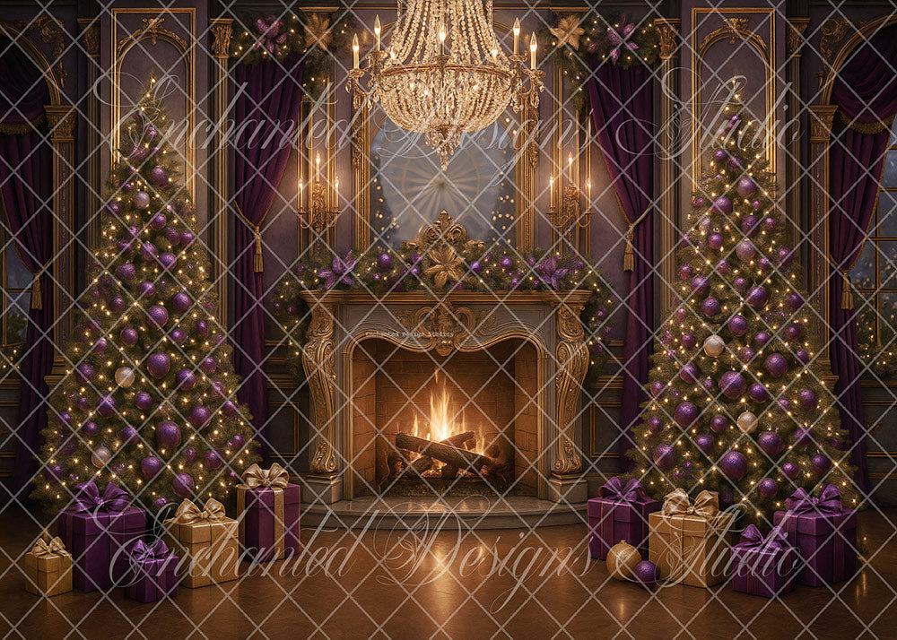 Avezano Purple Christmas Fireplace Backdrop Designed By Enchanted Design Studio