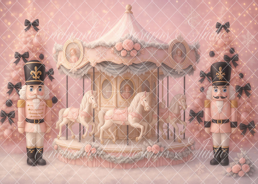 Avezano Christmas Pink Carousel and Nutcracker Backdrop Designed By Enchanted Design Studio