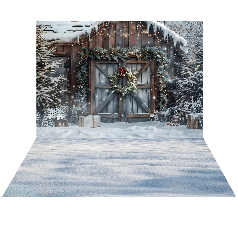 Avezano Christmas Winter Cabin Snow 2 pcs Set Backdrop