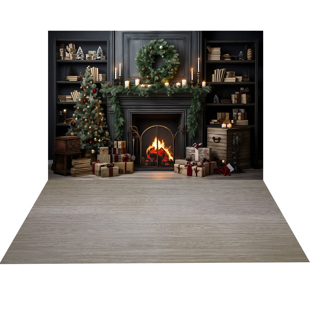 Avezano Christmas Fireplace and Bookshelf 2 pcs Set Backdrop