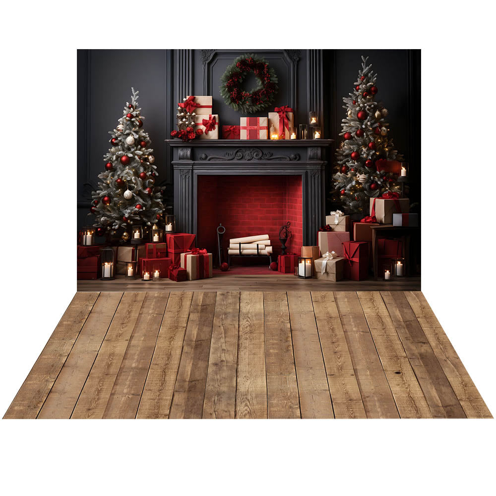Avezano Burning Fireplace Christmas 2 pcs Set Backdrop