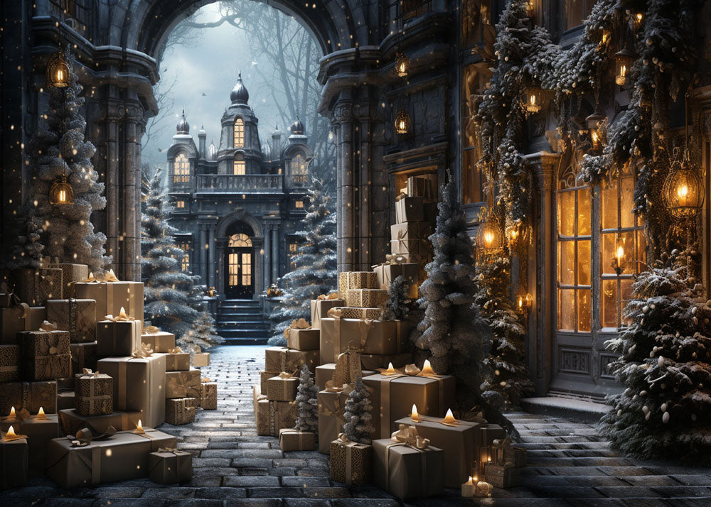 Avezano Christmas Tree Gift Snow 2 pcs Set Backdrop