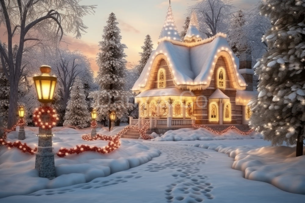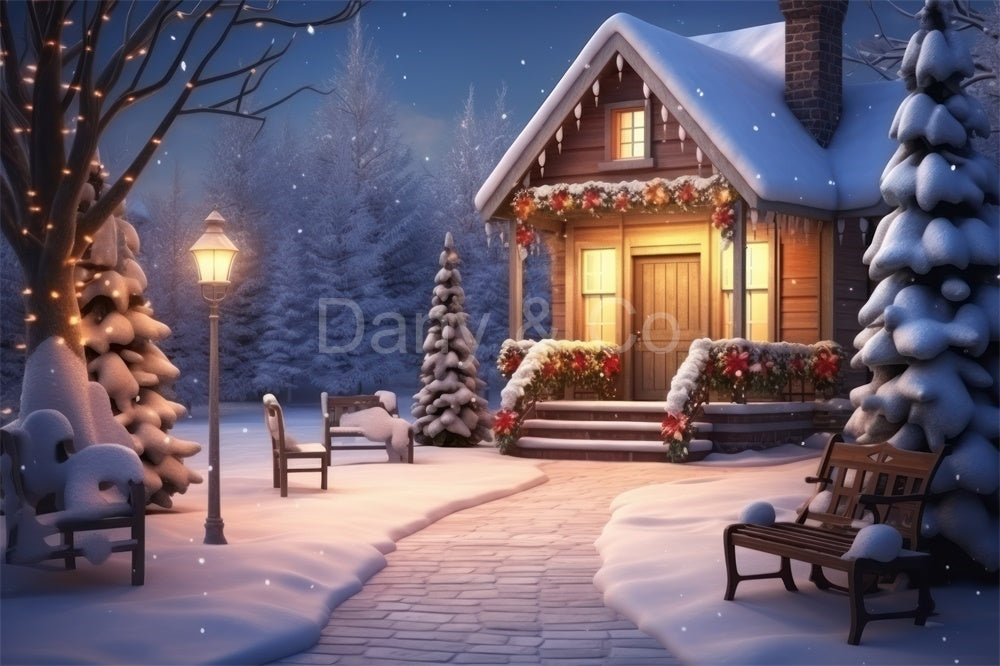 Avezano Christmas House and Snow in Winter Backdrop Designed By Danyelle Pinnington