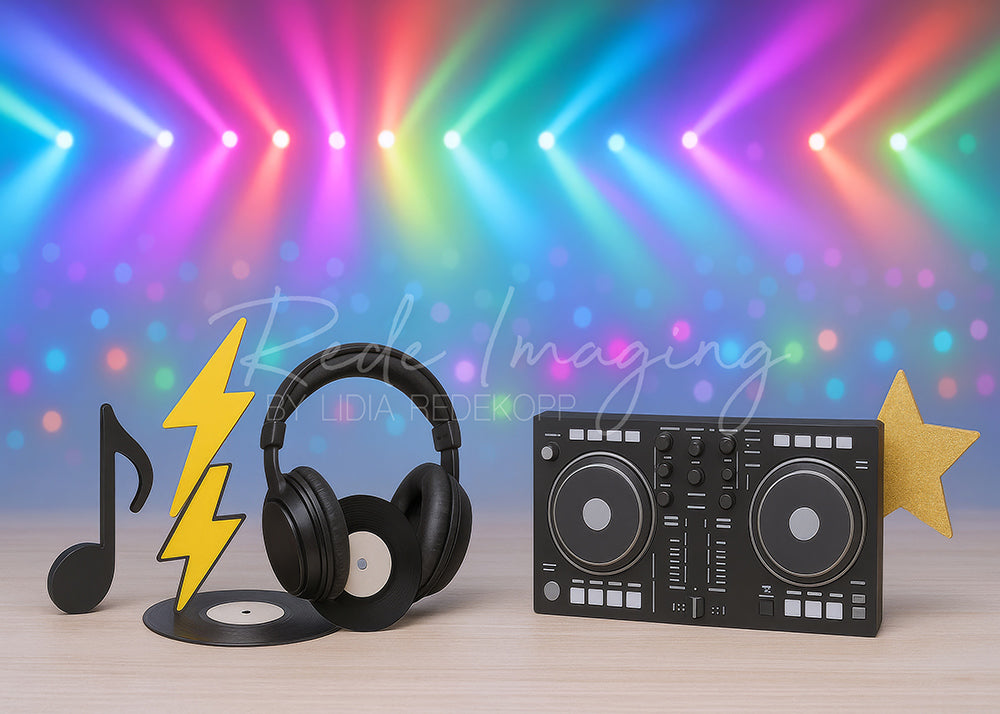Avezano DJ Music Equipment with Colorful Lights Photography Backdrop Designed By Lidia Redekopp