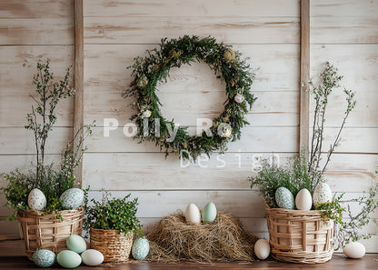 Avezano Easter Egg And Greenery Wreath Photography Backdrop Designed By Polly Ro Design