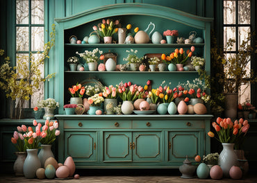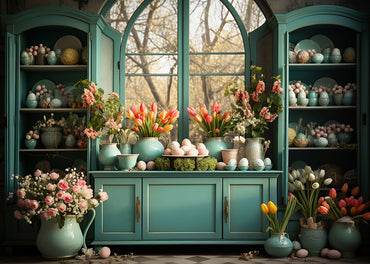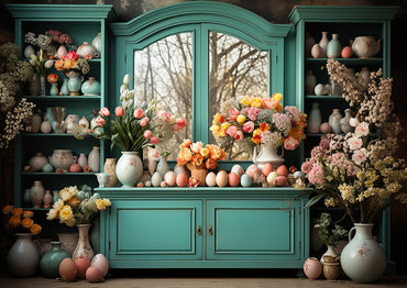 Avezano Easter Green Cabinet and Window Flowers 2 pcs Set Backdrop