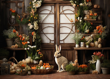 Avezano Easter Flowers and Bunny Photography Backdrop
