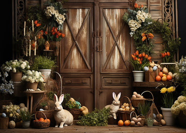 Avezano Easter Flowers and Wooden Door Photography Backdrop