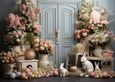Avezano Easter Flowers Bunny and Eggs Photography Backdrop