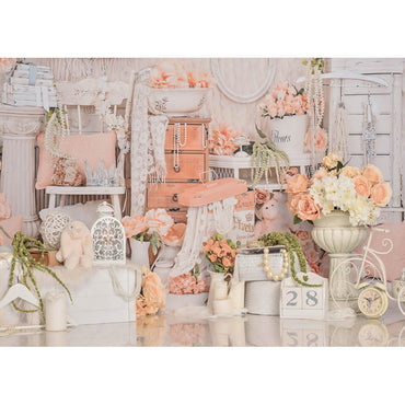 Avezano Orange Pink Cabinet And Flowers Scene Photography Backdrop