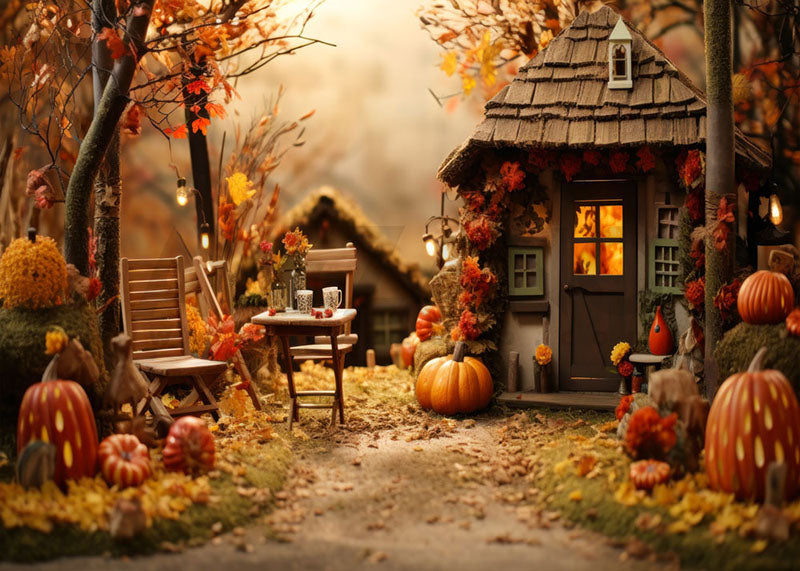 Avezano Halloween Pumpkin Cabin Backdrop for Photography