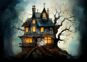 Avezano Witch'S Castle Blue Sky Halloween Backdrop for Photography