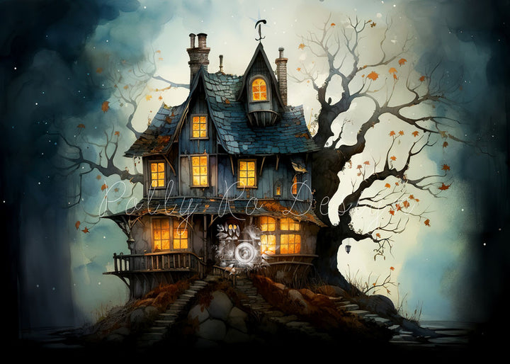 Avezano Witch Under The Full Moon Halloween Photography Backdrop