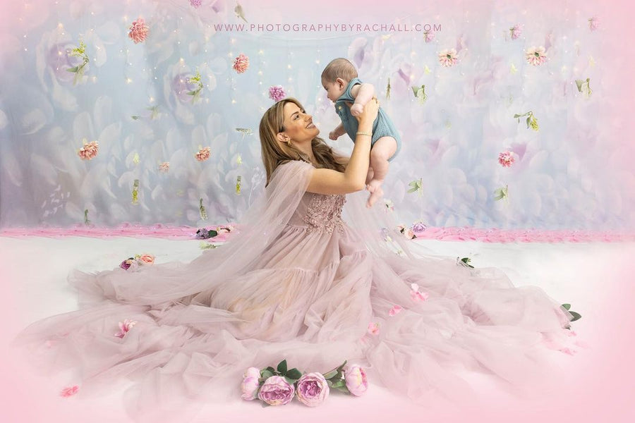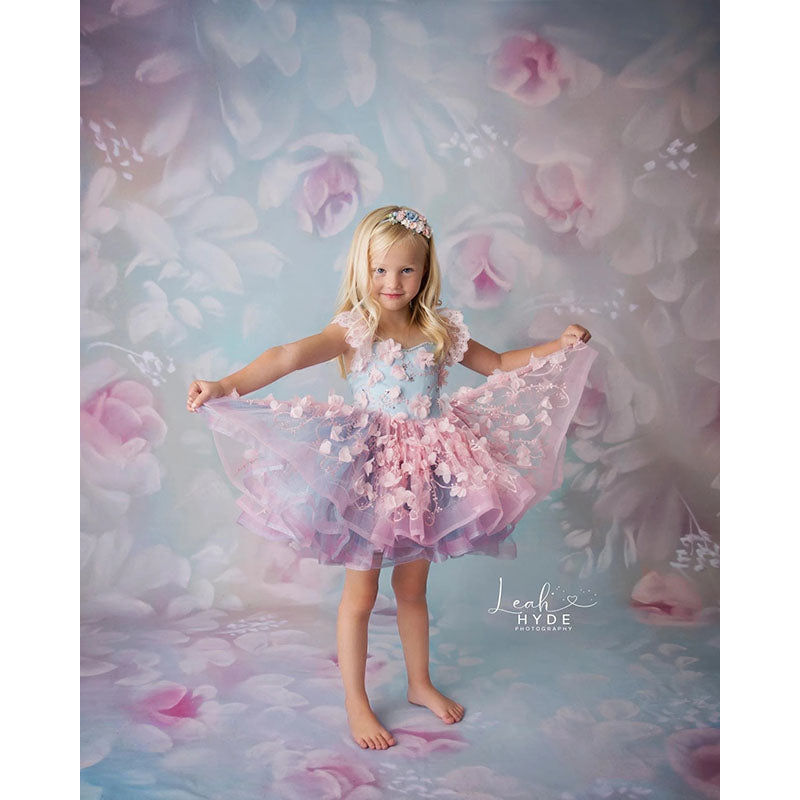 Avezano Light Blue And Pink Hand Painted Flowers Photography Backdrop