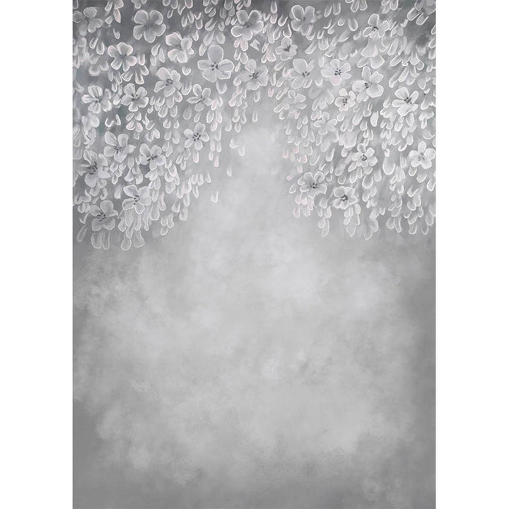 Avezano Gray White Handpainted Art Flowers Backdrop For Photography