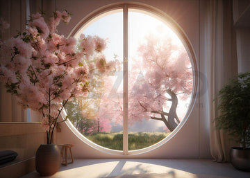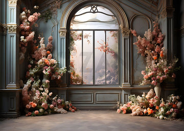 Avezano Spring Glass Windows and Flower Decorations Doors and Windows Photography Backdrop