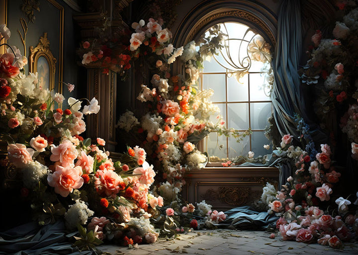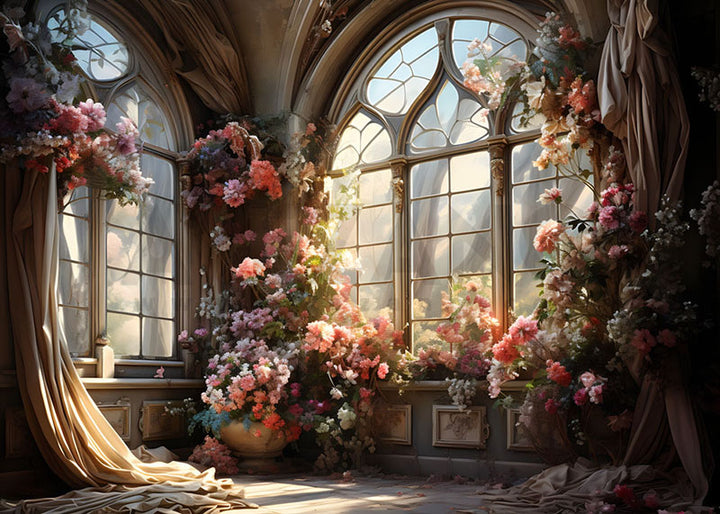 Avezano Flowers and Delicate Windowsills Photography Backdrop