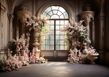 Avezano Pink Flowers and Glass Doors and Windows Photography Backdrop