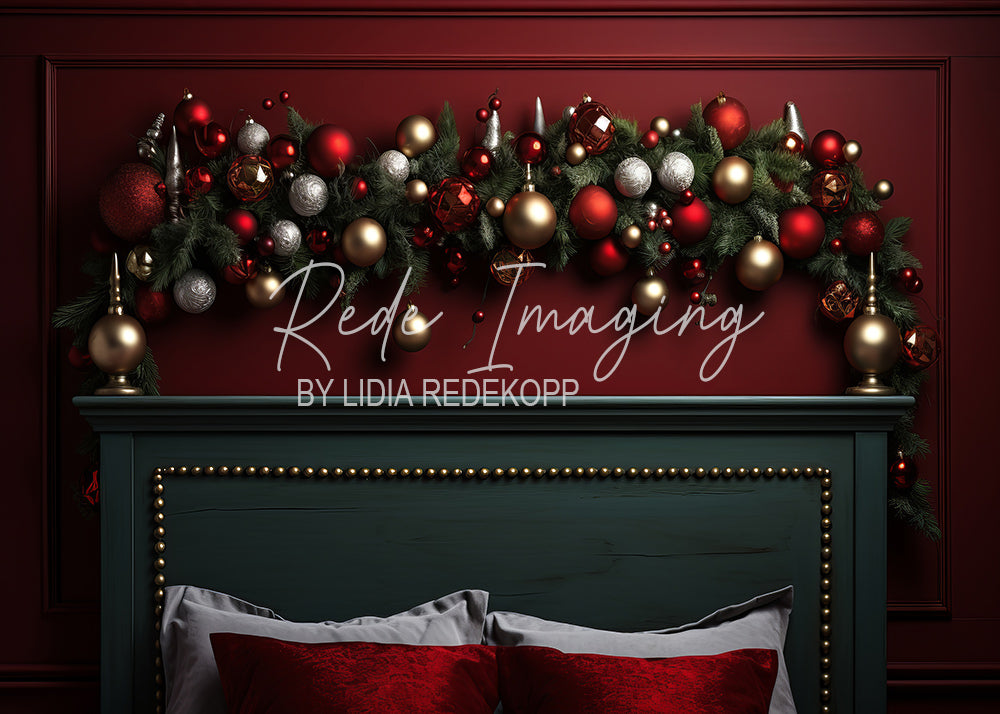 Avezano Red Walled Christmas Ornament Garland Headboard Photography Backdrop Designed By Lidia Redekopp