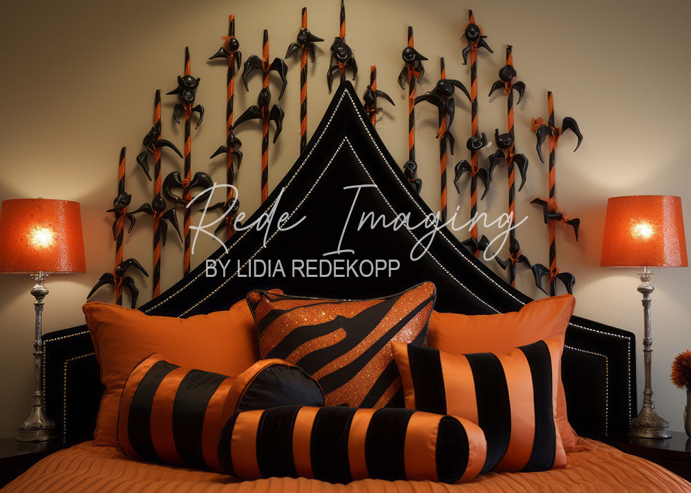 Avezano Orange and Black Halloween Headboard Photography Backdrop Designed By Lidia Redekopp