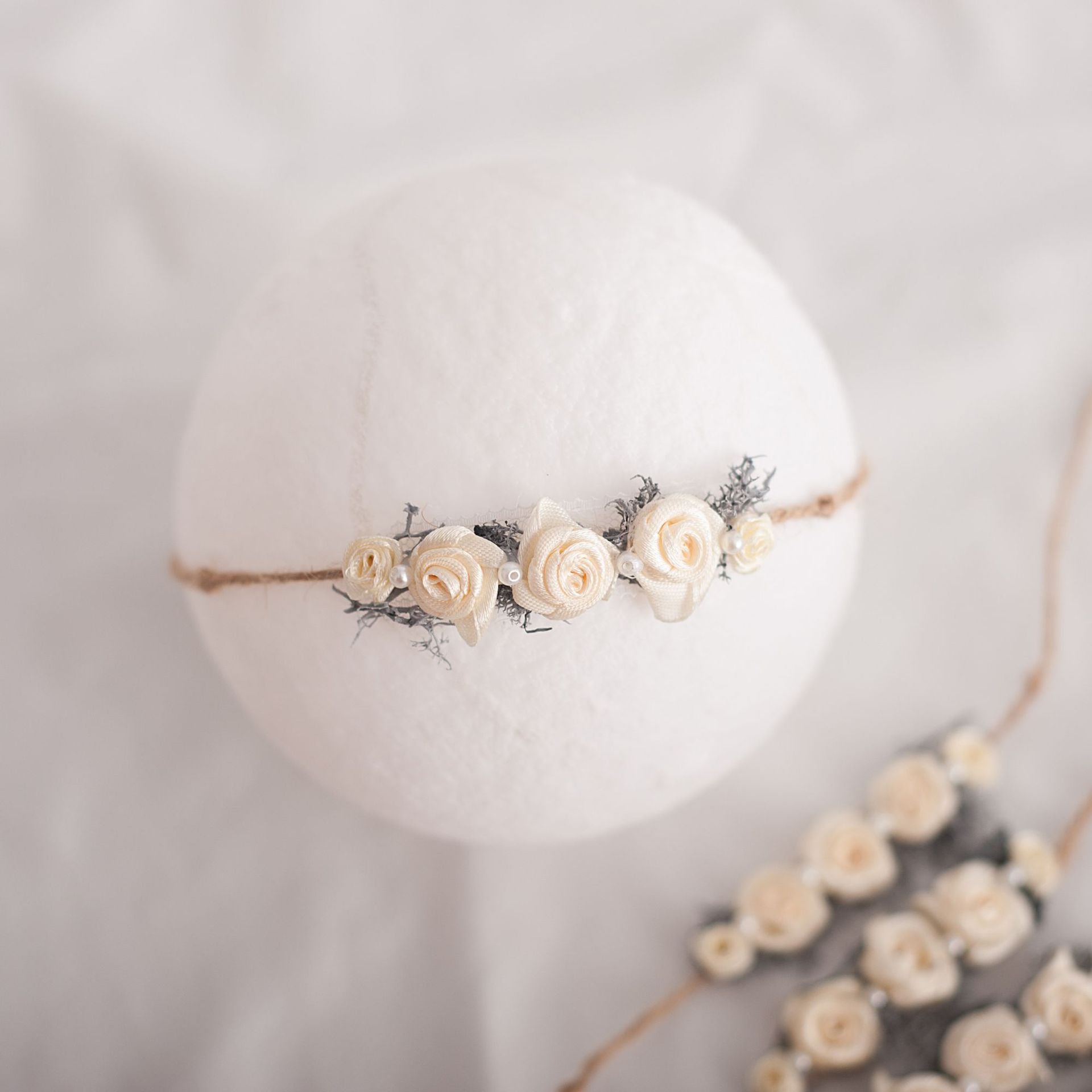 Avezano Baby Full Moon Photo Beige Pearl Headband