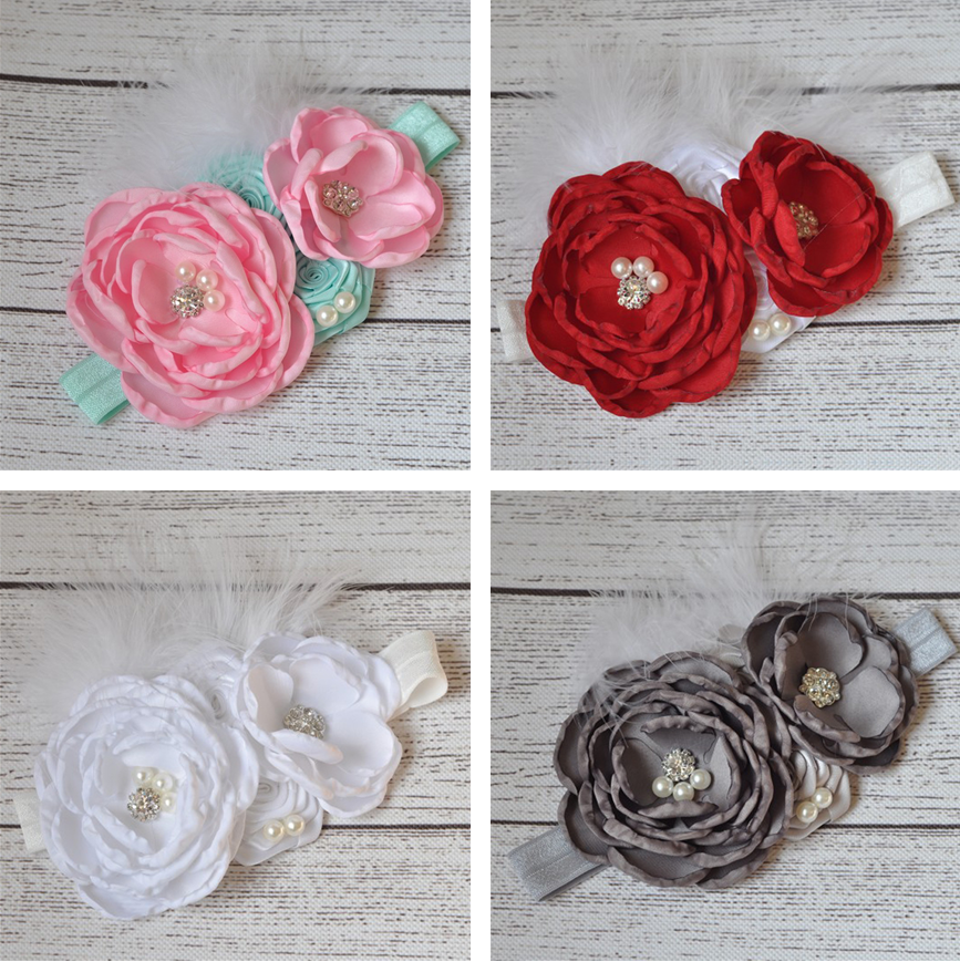Avezano Red Hair Band Baby Head Flower Hair Accessories Headdress