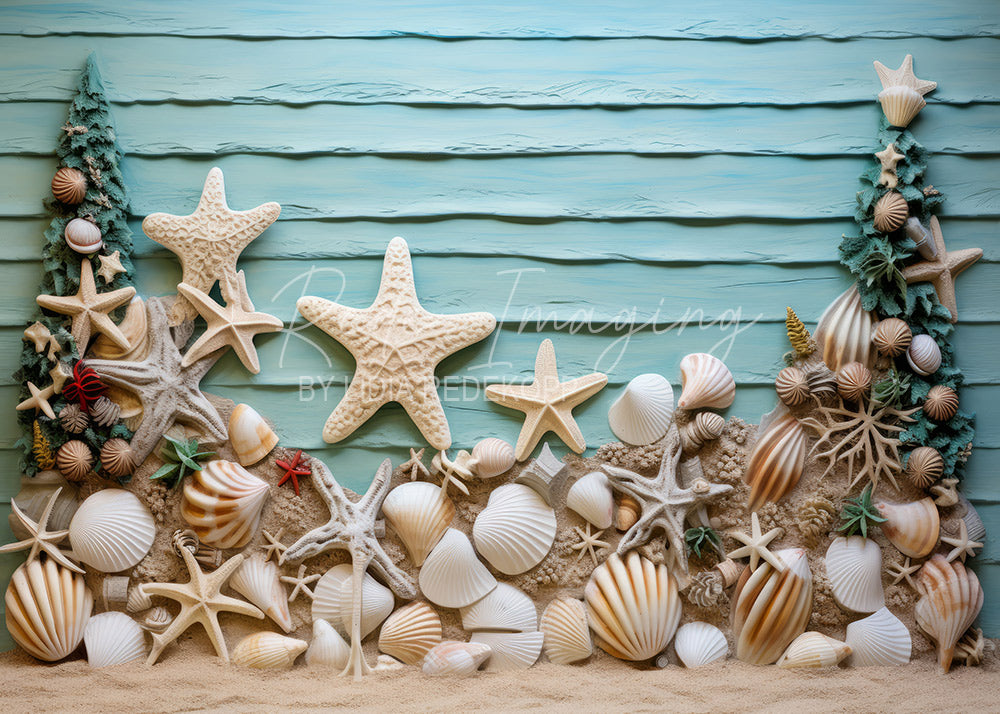 Avezano Christmas Starfish and Tree Photography Backdrop Designed By Lidia Redekopp