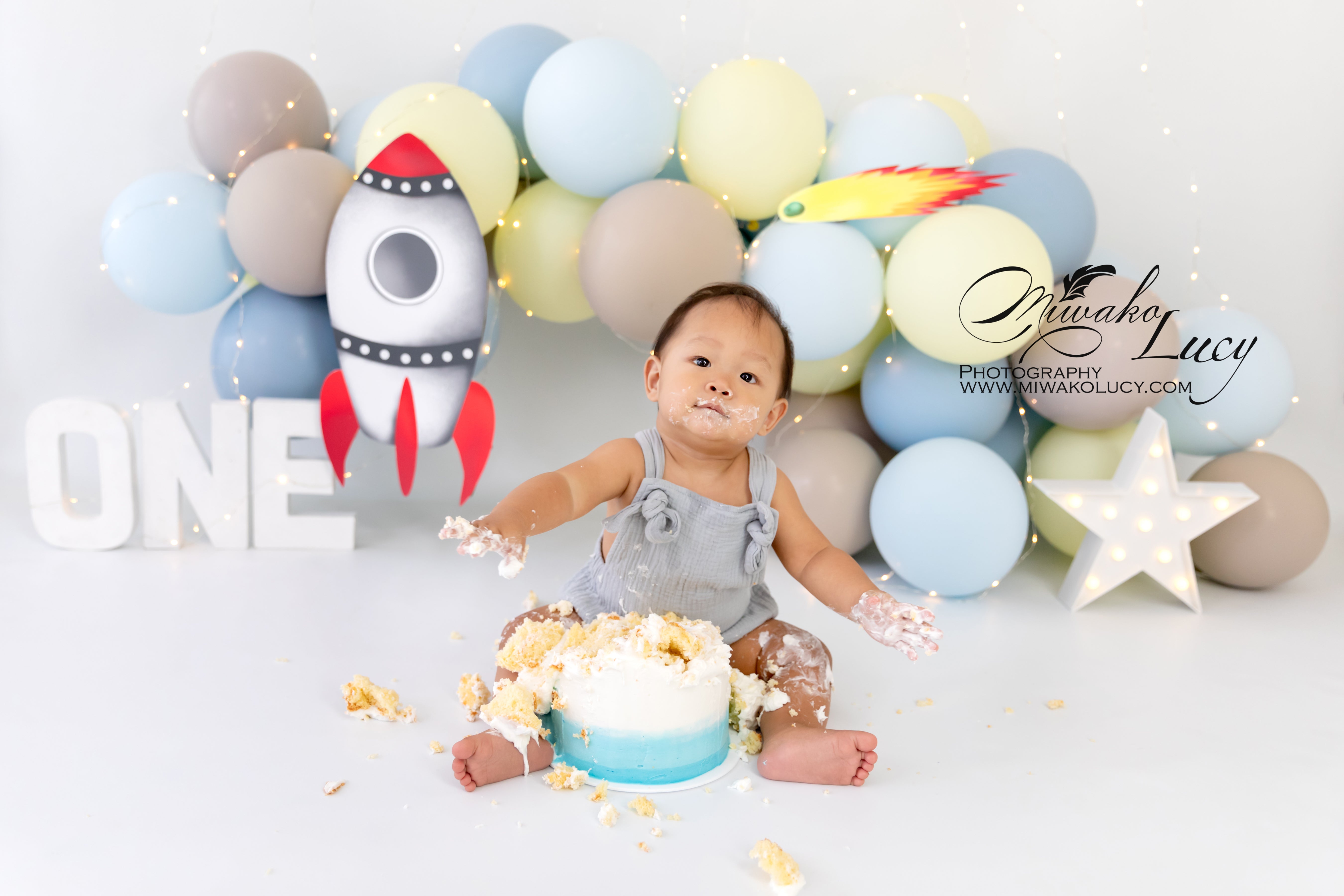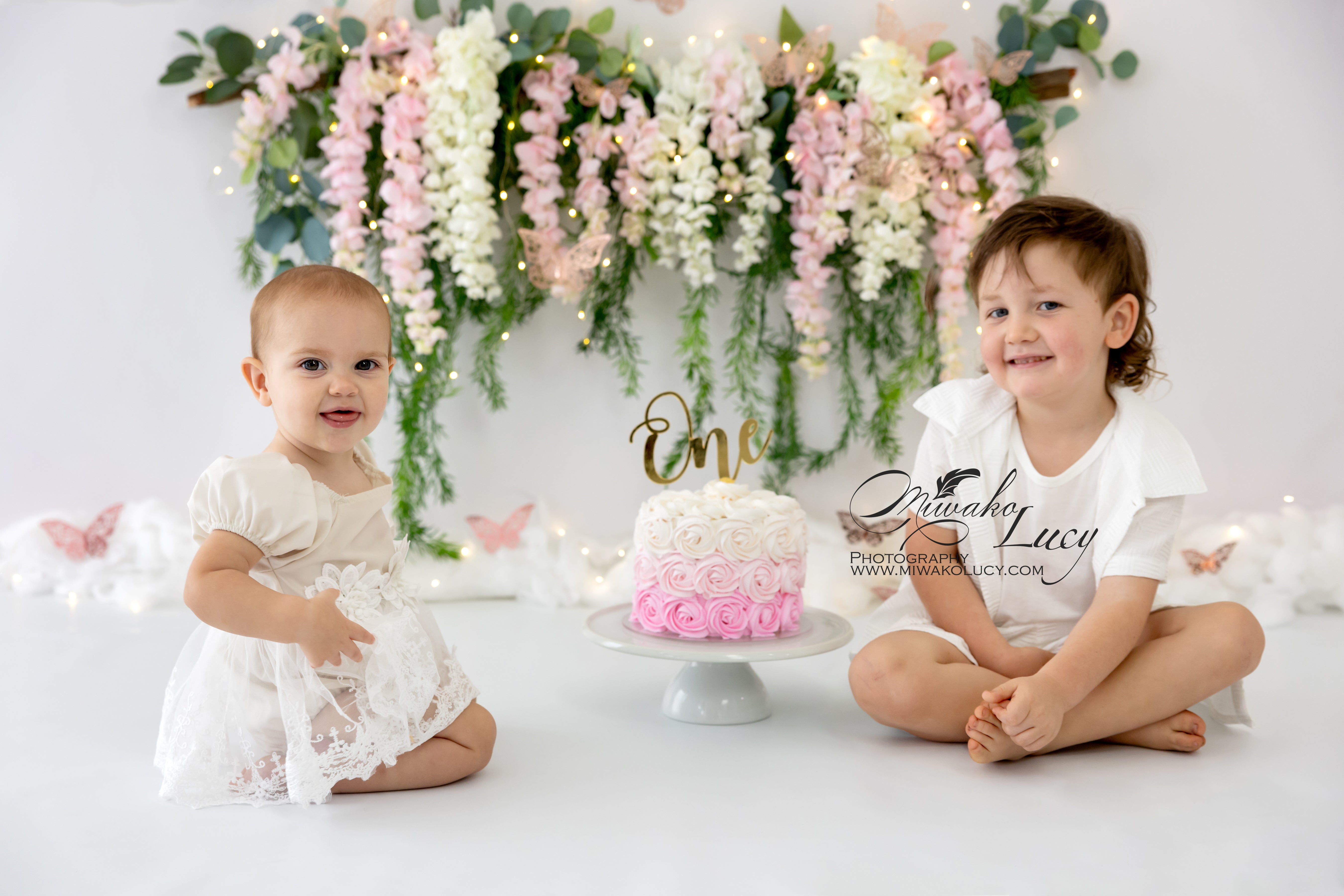 Avezano Baby One Birthday Balloons and Flowers Backdrop for Photography By Miwako Lucy Photography