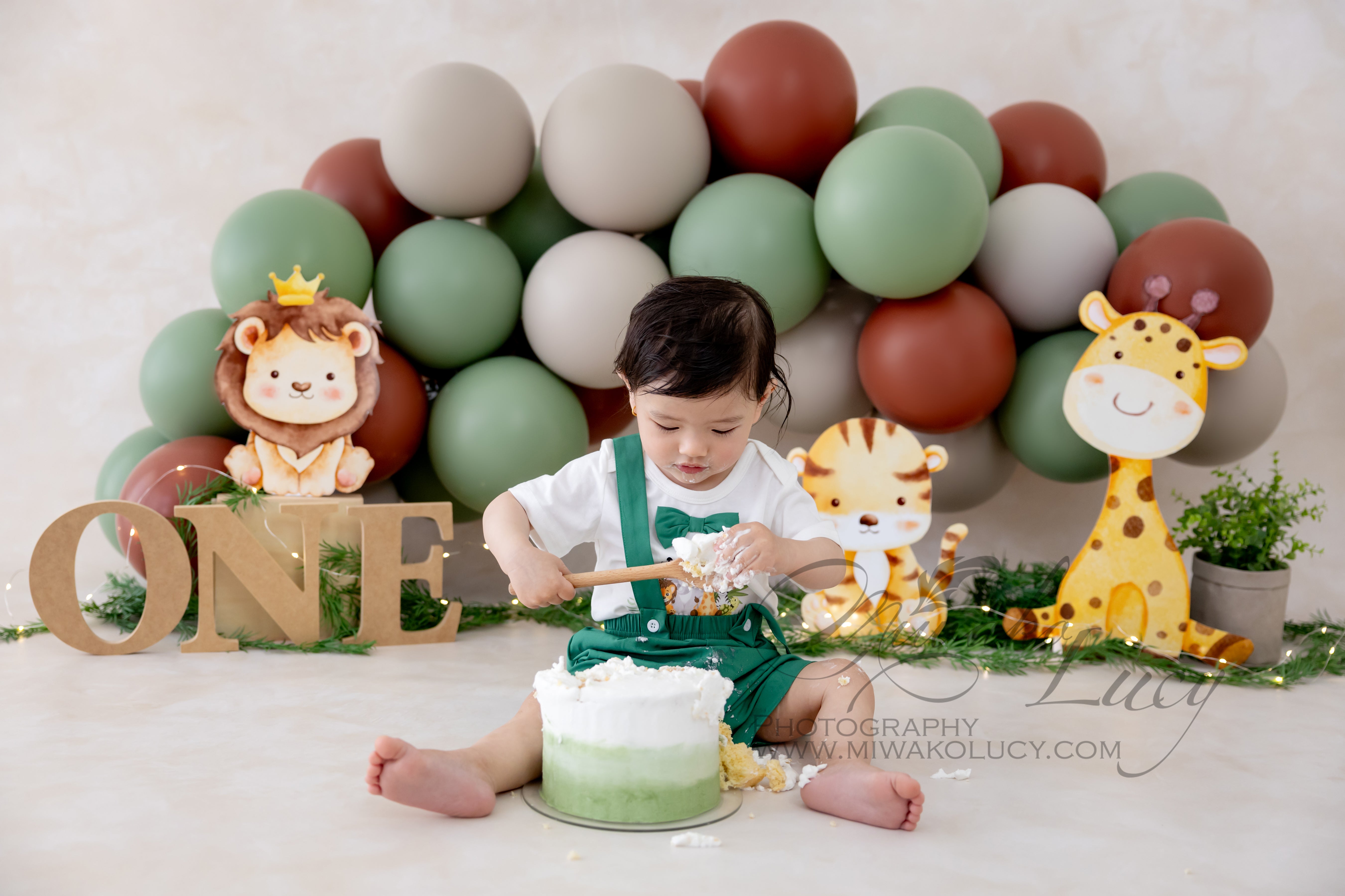 Avezano Green Balloon Party Tiger Cub Backdrop for Photography By Miwako Lucy Photography