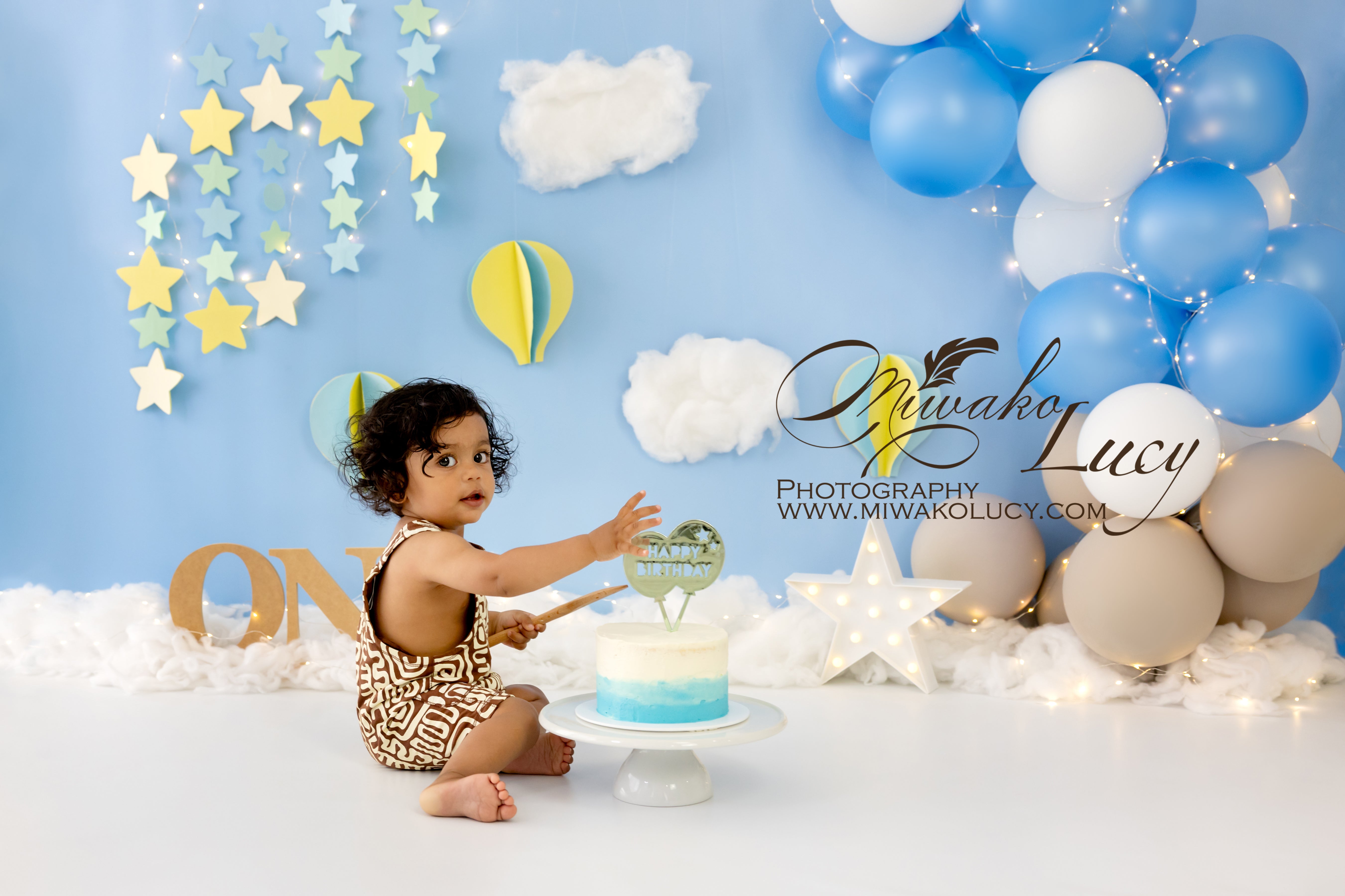 Avezano Baby Birthday Blue Balloon Backdrop for Photography By Miwako Lucy Photography