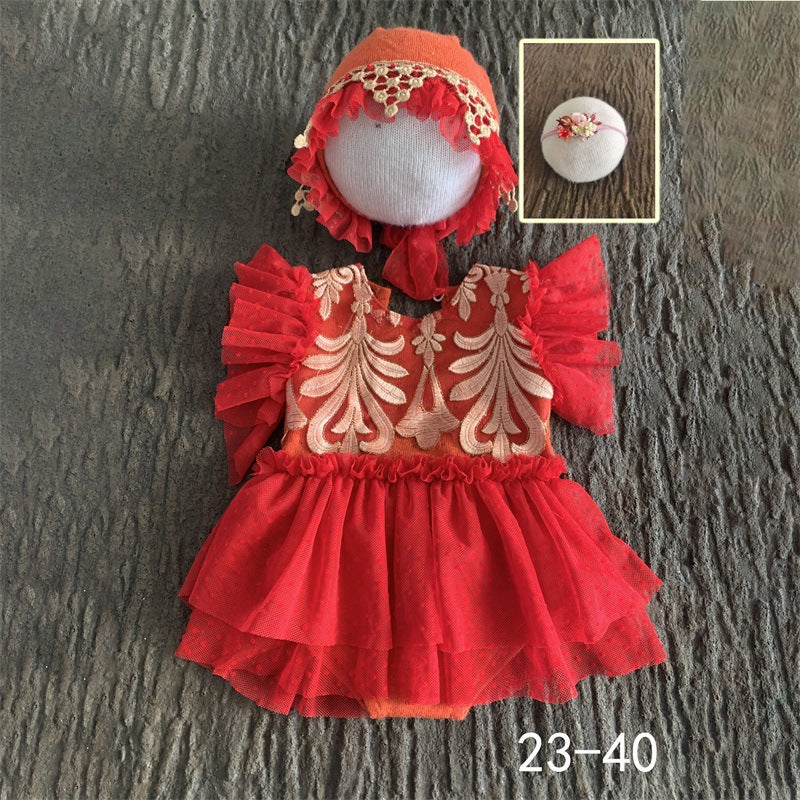 Avezano Baby Red Dress Soft Hat+One-Piece Suit Outfits Photography Props