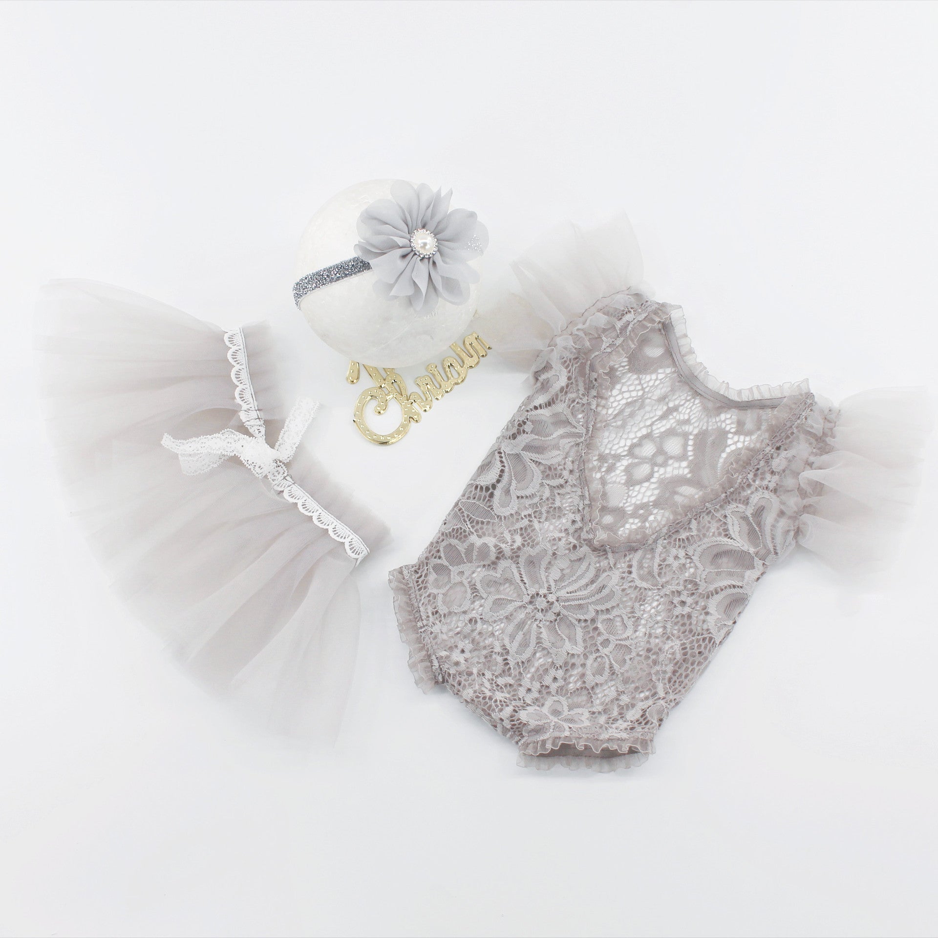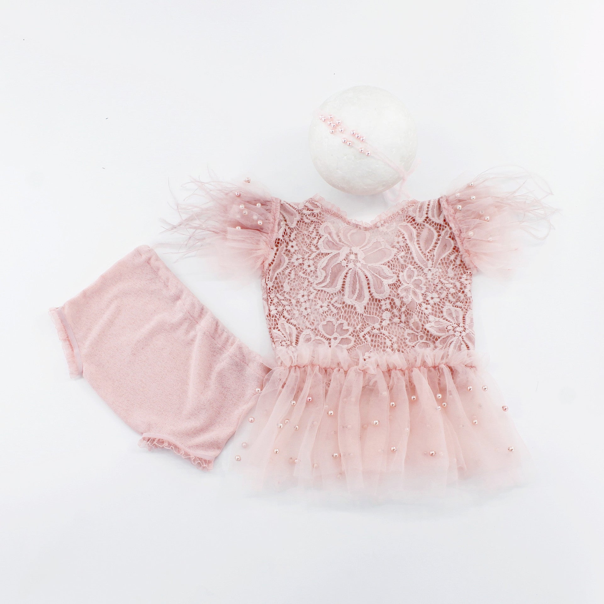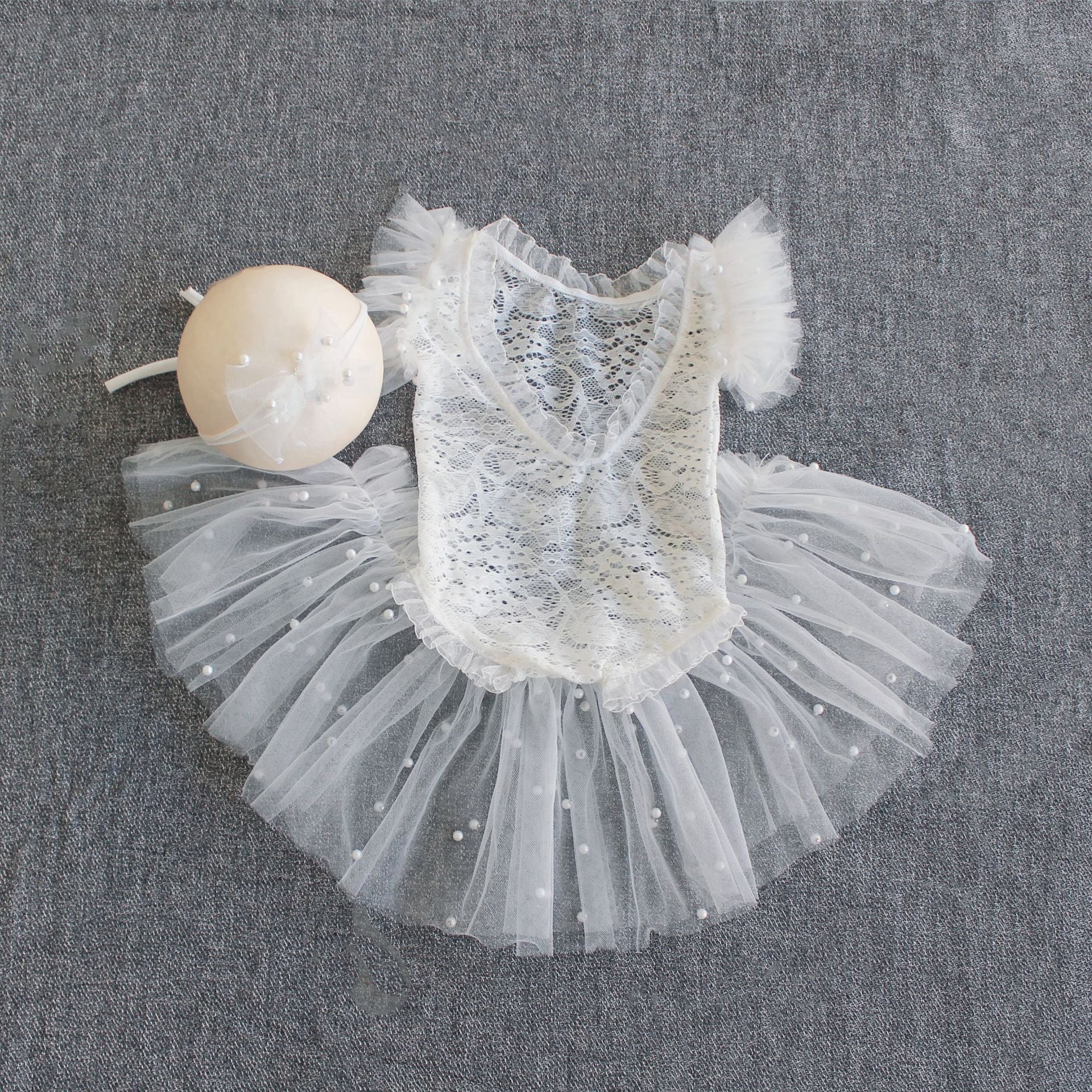 Avezano Baby Lace Pearl One Piece Romper Outfits Set Props