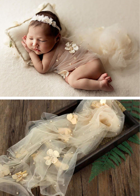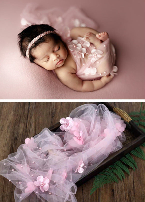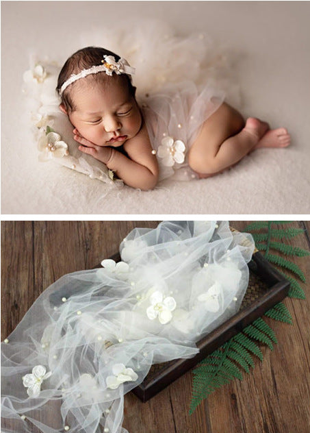 Avezano Newborn Floral Pearl Mesh Wrap Photography Props