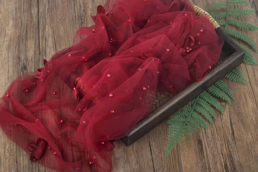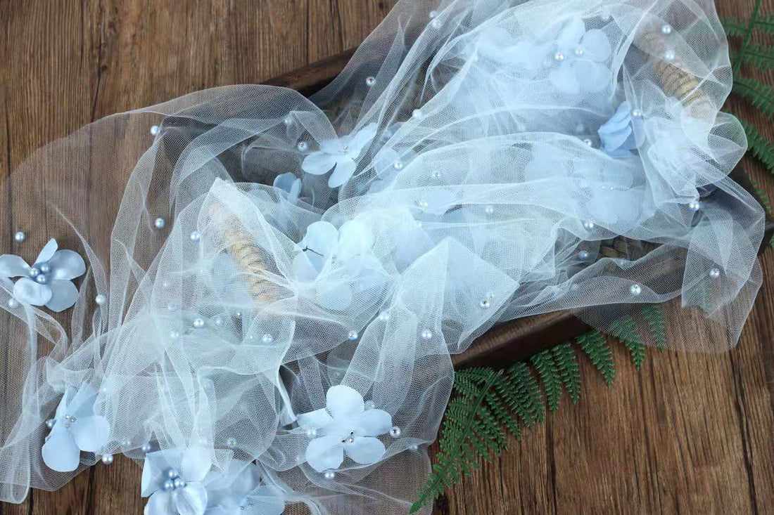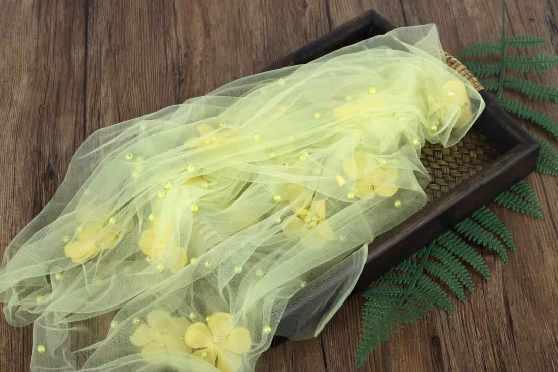 The mesh creates a hazy feeling and is embellished with flowers. It is very good. The material is soft and skin-friendly. The mesh fabric is suitable for summer, whether it is a wrapping cloth, a background rug or a floor mat. ! It can be matched with multiple scenes. If the weather gets cold, you can wrap it with a layer of wrapping cloth first, and then match it with the netting yarn, the effect is cute!
