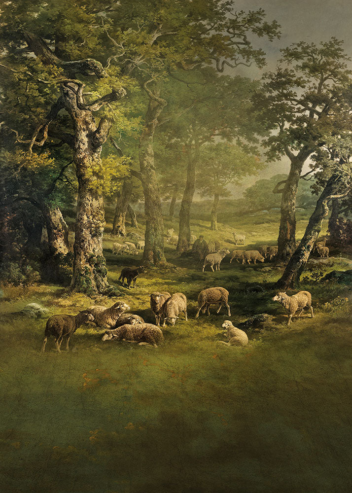 Avezano Woods for Sheep Oil Painting Style Photography Backdrop