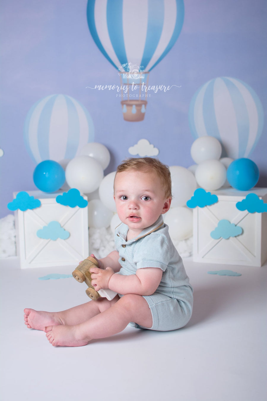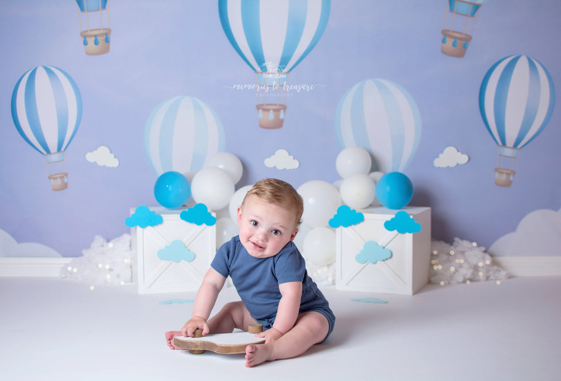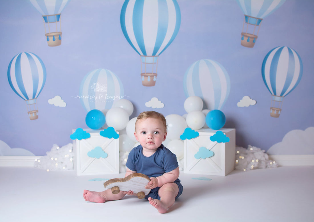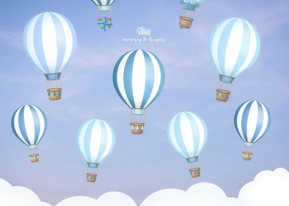 Avezano Blue Hot Air Balloons Backdrop for Photography Designed By Paula Easton